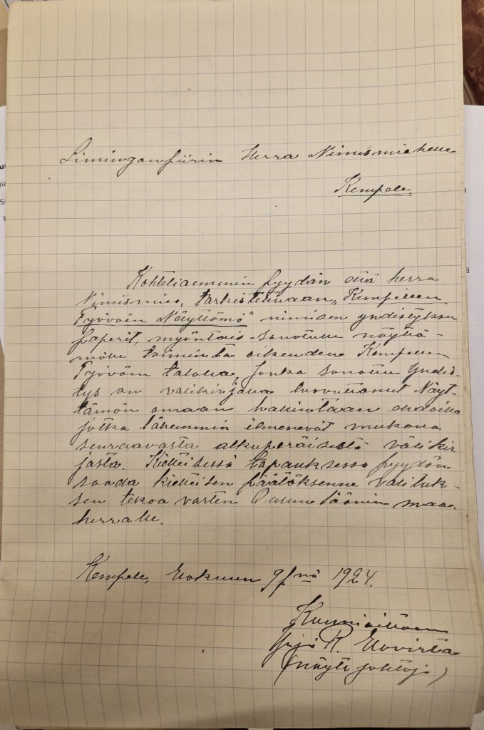 18 Kempeleen työväenyhdistyksen vuosikertomukset 1928-1929; Muistiinpanot Kempeleen työväennäyttämön ensimmäisestä toimintavuodesta. Oulun lääninhallituksen lääninkanslian arkisto: Hfb:8 Lakkautettuja kommunistisia yhdistyksiä koskevat asiakirjat.